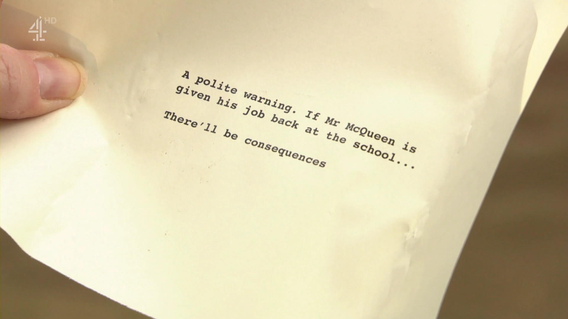 Matthew-Jesus has been sent home for lashing out at a boy who made fun of John Paul being arrested for being drunk. Vicky and Joseph are back together. Walter returns from his holidays. John Paul decides he'll go to rehab tomorrow. Olivia's unimpressed to hear Sally tell John Paul there might be a job waiting for him when he gets back. Walter surprises DeMarcus for his birthday. Joseph sends DeMarcus the video he recorded earlier. A brick is thrown into the McQueens garden whilst Sally and Mercedes are sat outside. It has a blackmail note attached to it.Cast